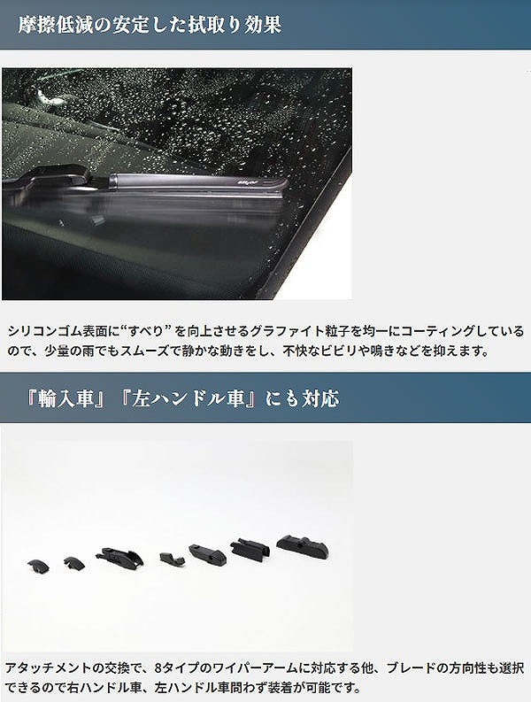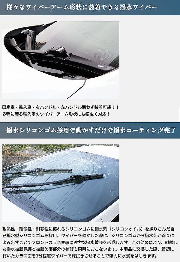 輸入車・国産車問わず装着可能な撥水ワイパー