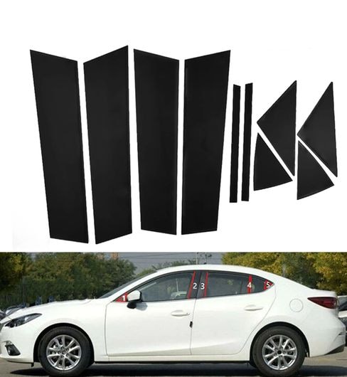 ピラー ポスト 適用: マツダ3/アクセラ 2014-2018 ドア サイド パネル モールディング インテリア ウインドウ トリム ステッカー カバー ピアノブラック SR-BB-8306
