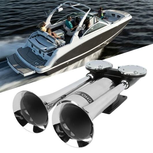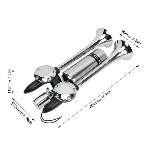 300DB エア ホーン 亜鉛 合金 クローム メッキ ダブル チューブ ラウドスピーカー 適用: 電車 船 SUV RV トラック オートバイ DC 12V/24V ホーン A SR-BB-8889