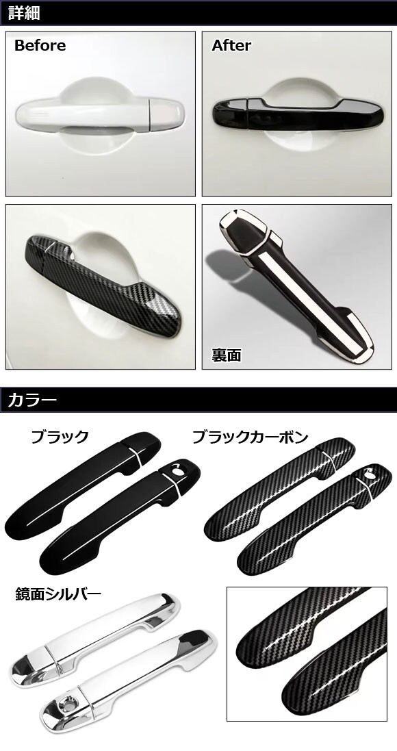 ドアノブカバー ドアハンドルガーニッシュ ドアノブガーニッシュ ドアカバー ドアノブカバーガーニッシュ ドアガーニッシュ アウトサイドドアハンドルカバー サイドドア ドアハンドル ハンドル 取っ手 ノブ ドア ドアノブ サイド 外側 車外 外 カバー フレーム ガーニッシュ リム トリム ベゼル プロテクト プロテクター 傷予防 傷付き防止 保護 ガード ABS ABS樹脂 樹脂 メッキ メッキパーツ 外装 外装パーツ パーツ エクステリア ドレスアップ カスタム カスタマイズ 装飾 アクセント アクセサリー アクセサリ BLACK 黒 光沢
