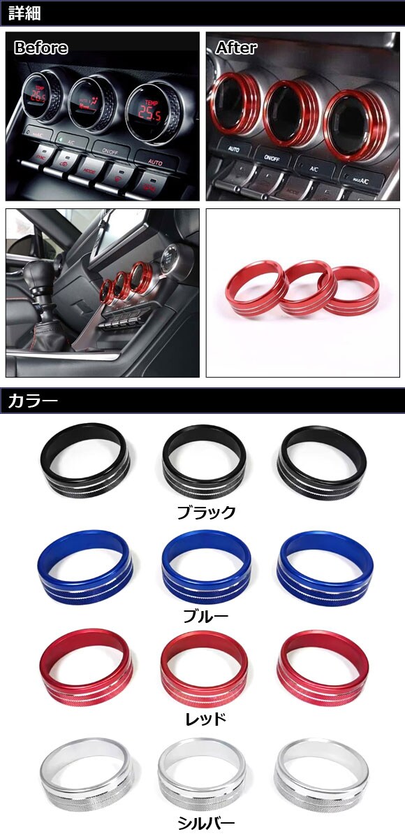 ダイヤルリングカバー スバル BRZ ZD8 2021年08月~ ブルー アルミ合金 入数:1セット(3個)