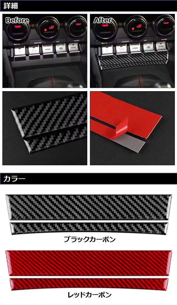 エアコンパネルアンダーステッカー スバル BRZ ZD8 2021年08月~ ブラックカーボン カーボンファイバー製 入数:1セット(2個)