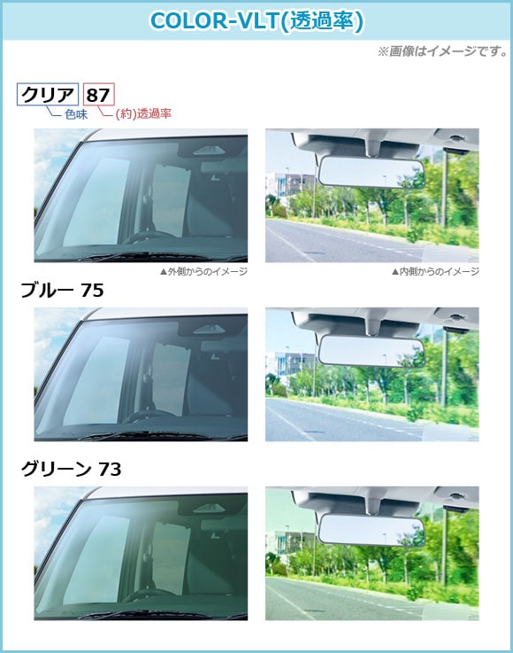 可視光線透過率(VLT)が70%以上で車検対応です。後席はどのフィルムも貼り付け可能です。