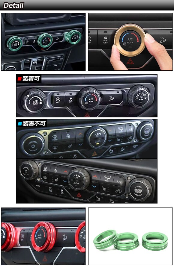エアコンダイヤルカバー ジープ ラングラーアンリミテッド JL系 2018年~ ゴールド アルミ製 入数:1セット(3個)