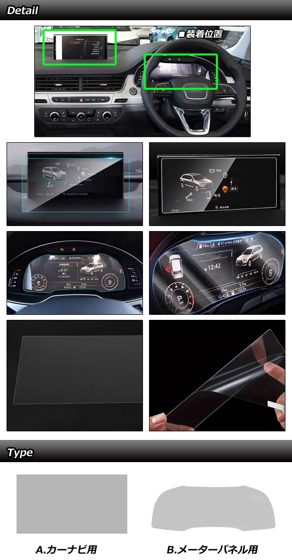 プロテクションフィルム カーナビ用 アウディ Q7 4M系 MC前 2016年~2019年 クリア 8.3インチ 強化ガラス AP-IT4509-A
