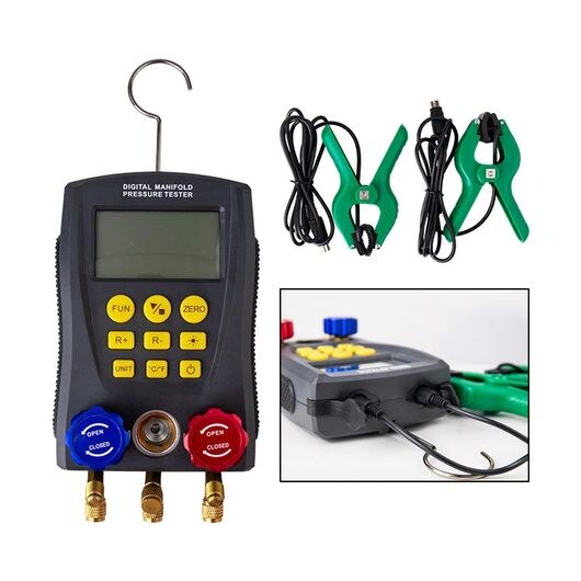 デジタル マニホールド キット 温度 リーク エアコン テスター メーター マニホールド 冷媒 プレッシャー ゲージ セット 適用: エアコン HVAC(空調ユニット) SR-CC-1215