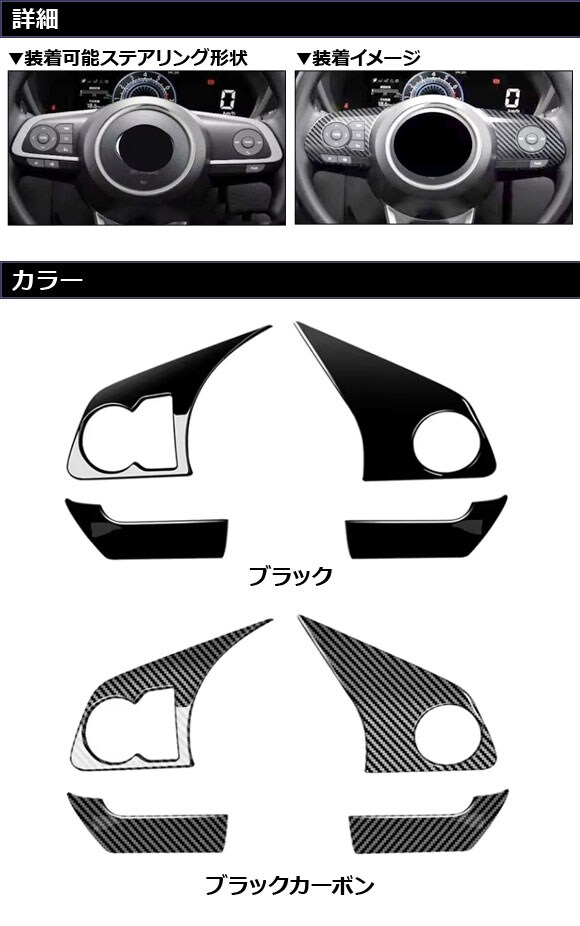 ステアリングスイッチカバー トヨタ ライズ A200系 2019年11月~ ブラック ABS製 入数:1セット(4個)