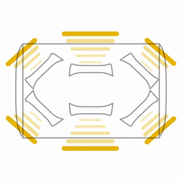 導光・反射を両立させた特殊レンズの採用により、「遠方はスポット配光、近傍はワイド配光」を実現し被視認性を高めています。