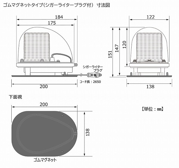 ゴムマグネットタイプ(シガーライタープラグ付)