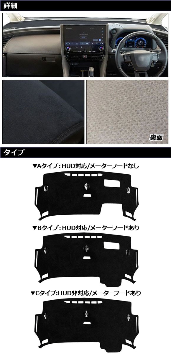 ダッシュボードマット トヨタ アルファード/ヴェルファイア 40系 2023年06月~ ブラック スエード調 Cタイプ AP-IT3363-C