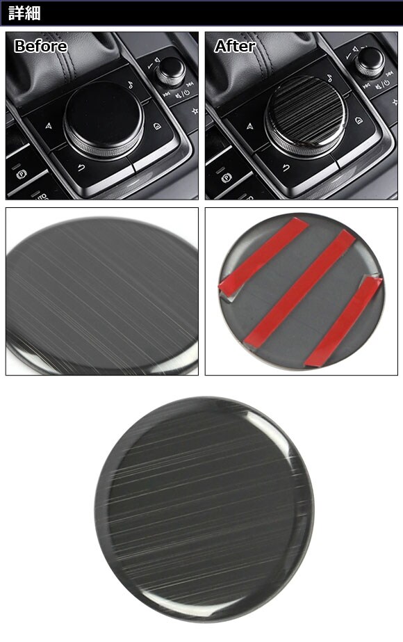 コンソールダイヤルカバー マツダ MAZDA3ファストバック/MAZDA3セダン BP系 2019年05月~ ブラック ステンレス製 ヘアライン仕上げ