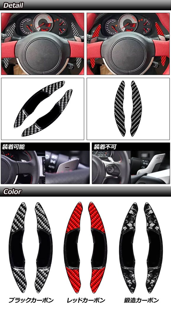 パドルシフトカバー レッドカーボン ABS&カーボンファイバー製 スバル/トヨタ 汎用 BRZ WRX S4 86 など 入数:1セット(2個) AP-IT4541-RDC