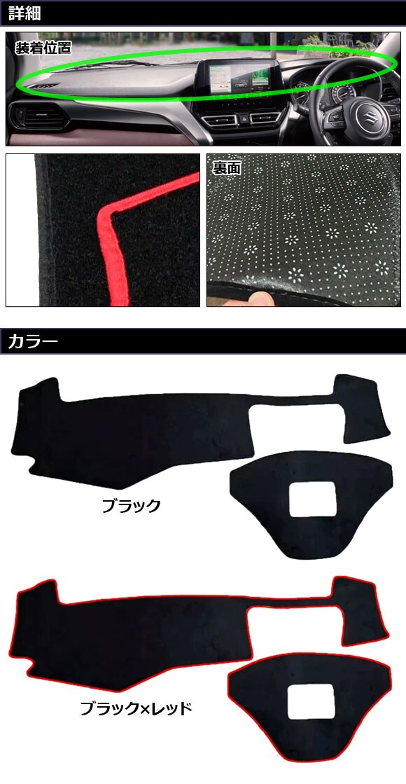 ダッシュボードマット スズキ フロンクス 3S系 2024年10月~ ブラック ポリエステル 入数:1セット(2個) AP-IT4567-BK