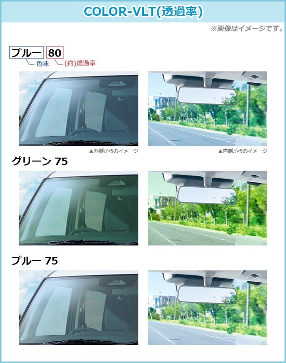 可視光線透過率(VLT)が70%以上で車検対応です。後席はどのフィルムも貼り付け可能です。