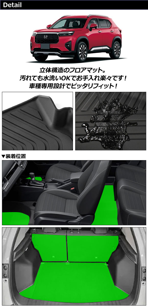 3D フロアマット フルセット ホンダ WR-V DG5 2024年03月~ TPE素材 入数:1セット(6個) AP-IT4573