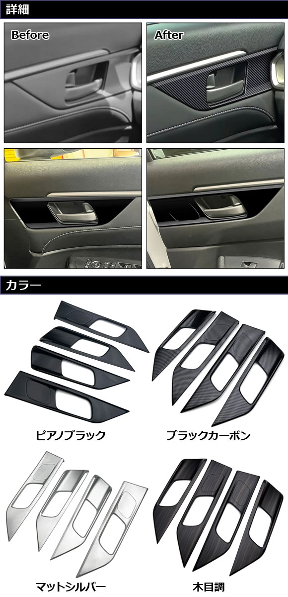 インナードアハンドルパネル ホンダ WR-V DG5 2024年03月~ ピアノブラック ABS製 入数:1セット(4個) AP-IT4576-PBK