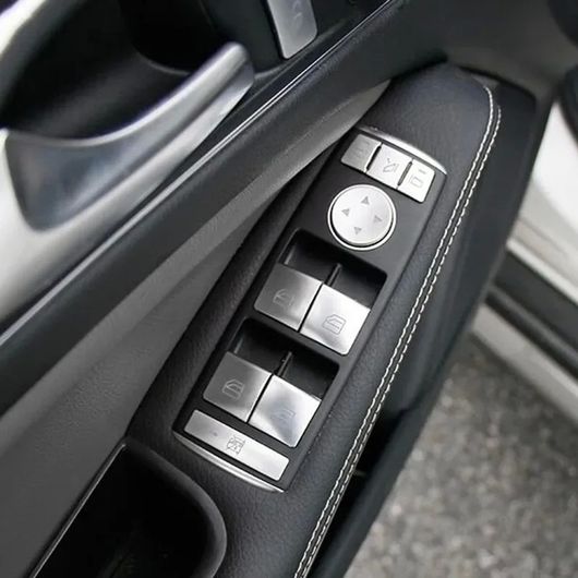 ウインドウ ガラス リフト ボタン カバー スイッチ フレーム トリム 適用: メルセデス ベンツ W204 GLA X156 CLA C117 A W176 B ABS カーボン調調 フレーム~シルバー カバー SR-CC-4394