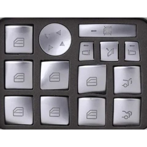 ウインドウ ガラス リフト ボタン カバー スイッチ フレーム トリム 適用: メルセデス ベンツ W204 GLA X156 CLA C117 A W176 B ABS カーボン調調 フレーム~シルバー カバー SR-CC-4394