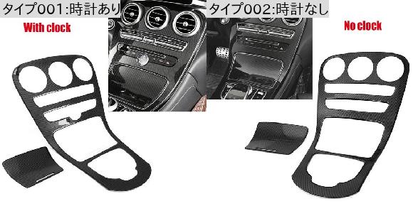 センター コンソール パネル カバー トリム 適用: メルセデス ベンツ C-クラス W205 C180L C200 C300 2015-2018 ABS カーボン ステッカー 装飾 時計あり・時計なし SR-CC-4683