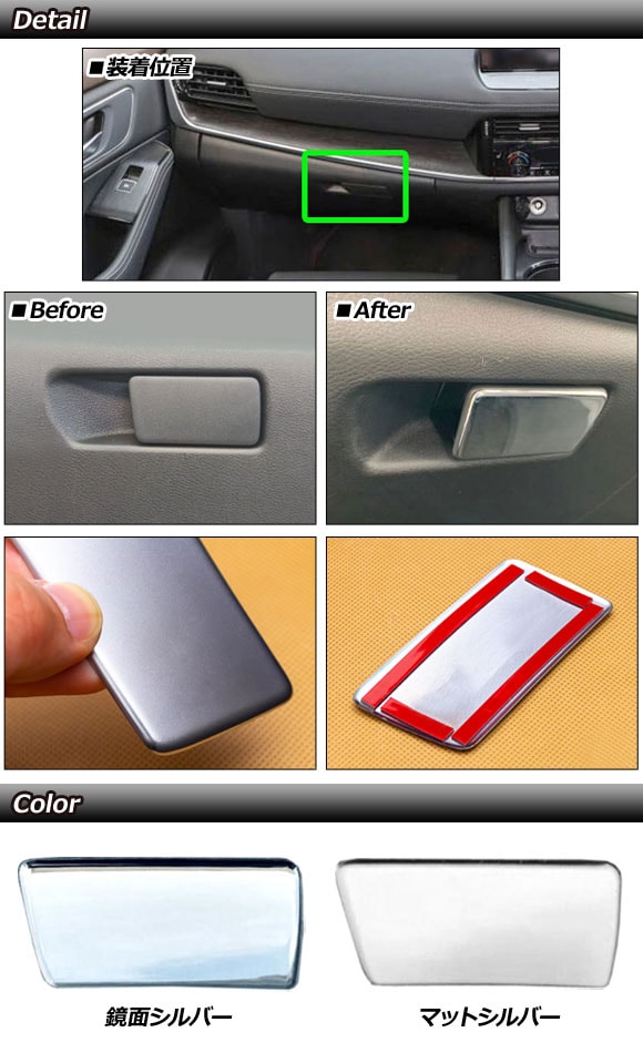 グローブボックスハンドルカバー 日産 エクストレイル T33系 2022年07月~ マットシルバー ABS製 右ハンドル用 AP-IT4606-MSI