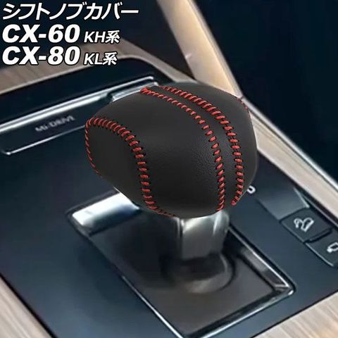 シフトノブカバー マツダ CX-60 KH系 2022年09月~ ブラック×レッドステッチ レザー調