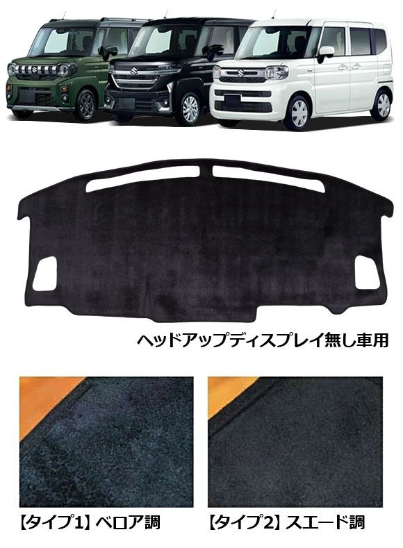 ダッシュボードマット スズキ スペーシア/スペーシアカスタム/スペーシアギア MK54S/MK94S HUD無し車用 2023年11月~ ブラック ベロア調 AP-IT4677-T1
