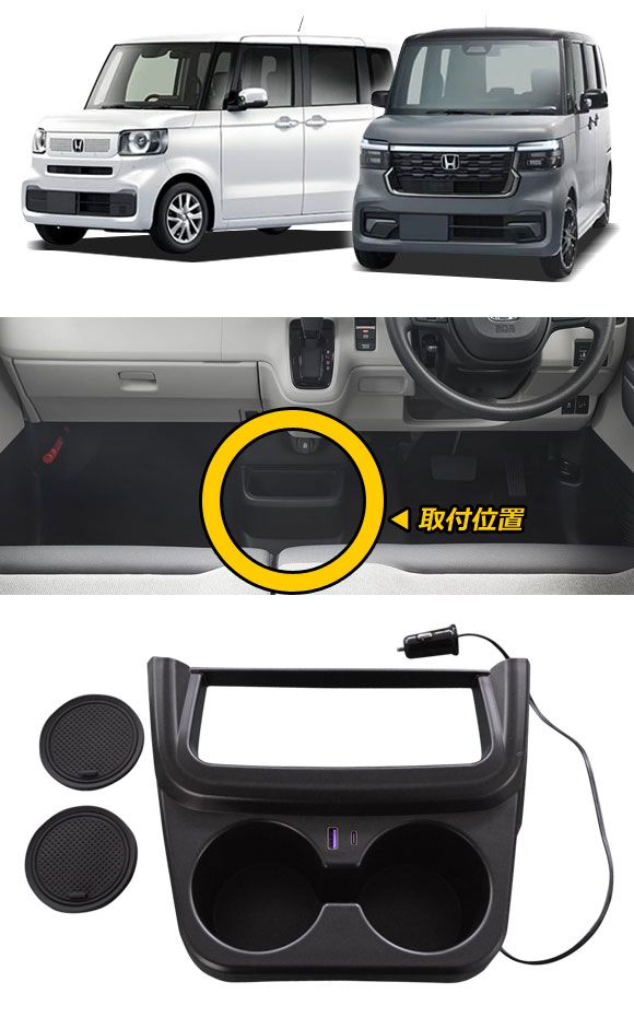 カップホルダー 電源増設ユニット付き ホンダ N-BOX/N-BOXカスタム JF5/JF6 2023年10月~ AP-AS1133