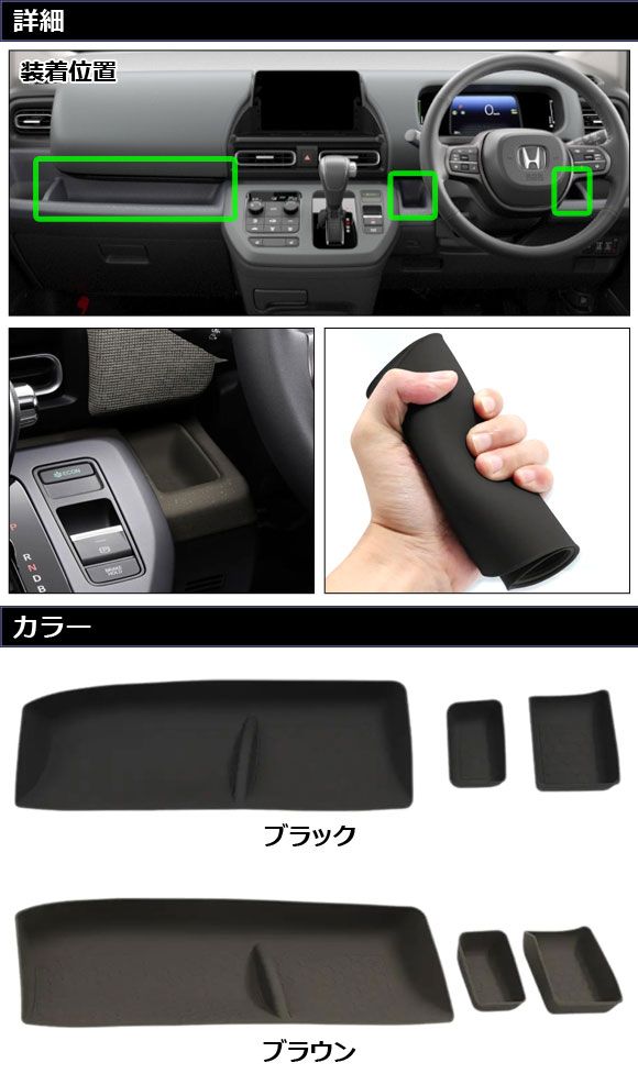 インパネトレイマット ホンダ フリード GT系 2024年06月~ ブラウン シリコン製 入数:1セット(3個) AP-AS1136-A-BR