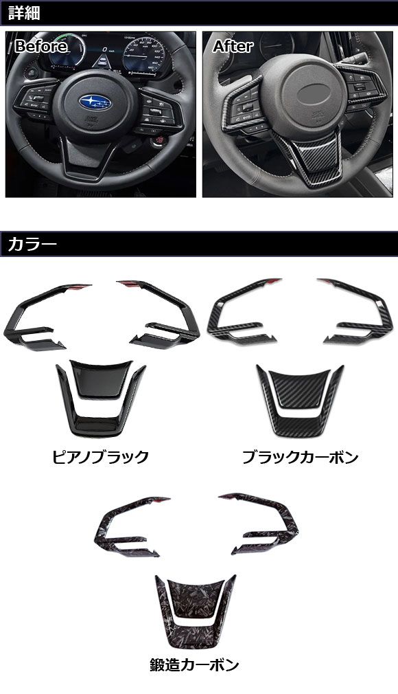 ステアリングカバーセット スバル クロストレック GU系 2022年09月~ ブラックカーボン ABS製 入数:1セット(4個)