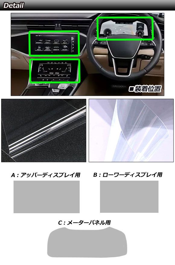 プロテクションフィルム メーター&ディスプレイ用 アウディ A6/A6アバント F2系 2019年03月~ クリア PET製 入数:1セット(3枚)
