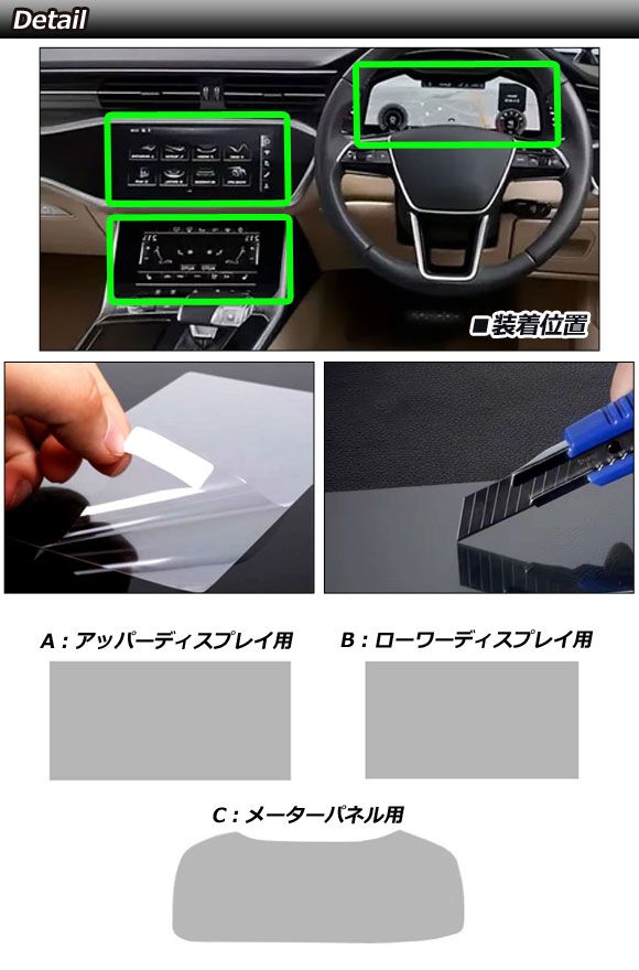 プロテクションフィルム メーター&ディスプレイ用 アウディ A7 F2系 2018年09月~ ブルーライトカット 入数:1セット(3枚)