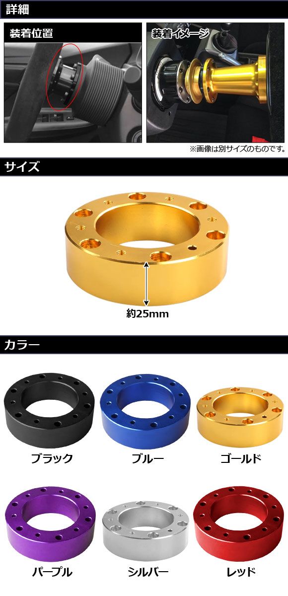 ステアリングホイールスペーサー ブルー 高さ25mm アルミ製 汎用 AP-4T4843-25-BL