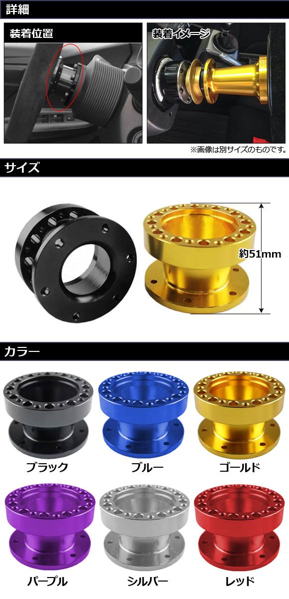 ステアリングホイールスペーサー ブラック 高さ51mm アルミ製 汎用 AP-4T4843-51-BK