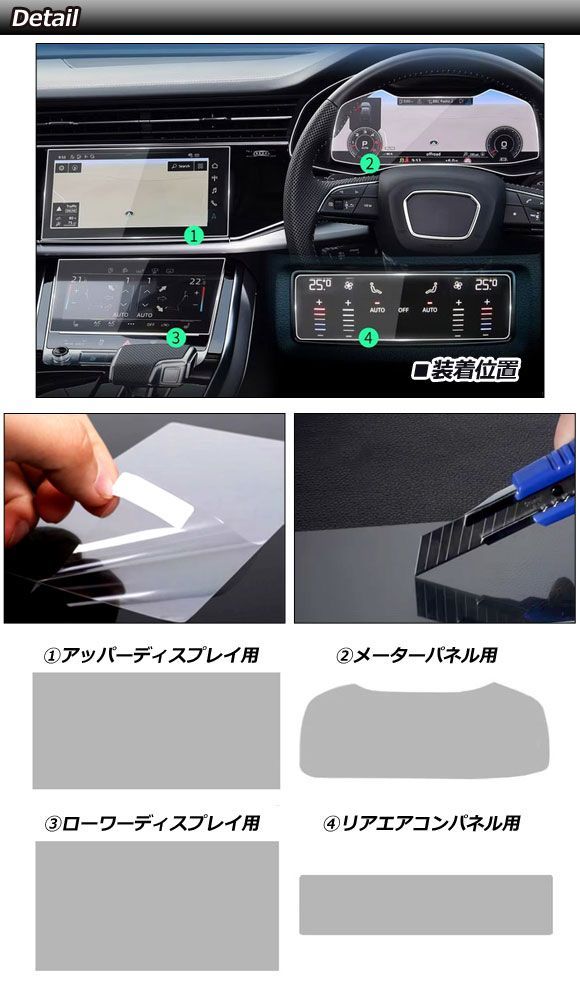 プロテクションフィルムセット アウディ Q8 F1系 2019年~ ブルーライトカット 強化ガラス 入数:1セット(4枚)