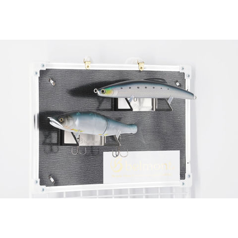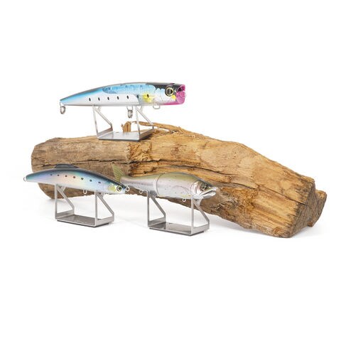 置いて使うのはもちろん、鉄製の壁やホワイトボードに貼り付けたり、有孔ボードに取り付けたり、S字フックで引っ掛けて使用もできる多機能なルアースタンド.磁石の耐荷重は約400g.ほとんどの大型のルアーをのせることが可能です.
