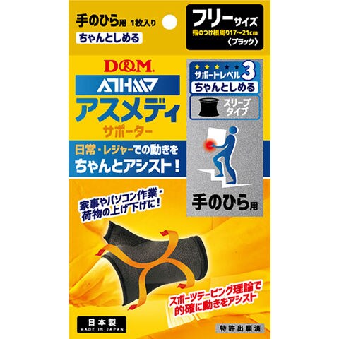 スポーツテーピング理論に基づき、強弱のある圧迫で手の動きをアシスト.手にフィットする快適な装着感で着脱もスムーズ.繰り返しの着用・洗濯にも耐える強い生地を使用.手のけが予防、疲労の蓄積予防に.日常・レジャーでの使用に最適.