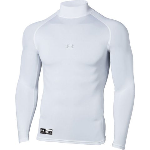 アンダーアーマー UNDER ARMOUR 野球&ソフトボール UA ヒートギアアーマー コンプレッション ロングスリーブ モック シャツ メンズ 長袖トップス 吸汗速乾 抗菌防臭 部活 クラブ 通気性 1358645 WHT