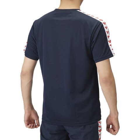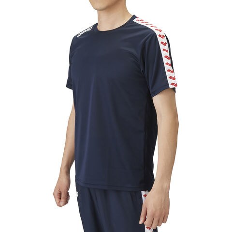 ドライメッシュ素材のTシャツ.チームウェア.スイマーにむけた商品.プールだけでなく、大会の行き帰りやトレーニング時にも着用できる.アリーナの定番ライン使用デザイン.シンプルデザインの為、パーソナルシーンからチームシーンまで多くのシーンでご使用可能.継続性のある商品のため、チームで揃えるためにおすすめのアイテム.布帛ウェアやスウェットとあわせての着用もおすすめ.