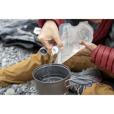 抗菌加工を施した口栓とキャップが雑菌の繁殖を抑えます.水を入れると自立が可能.テントサイトで使うならこのサイズ.テント山泊山行のスタンダードで朝まで余裕のサイズです.キャップストラップ付き.飲料水専用です.