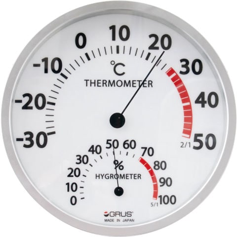 温度 ? 30℃~50℃、湿度0~100を正確に測定でき、防塩素仕様で長持ちする日本製の壁掛け式大型温湿度計です.