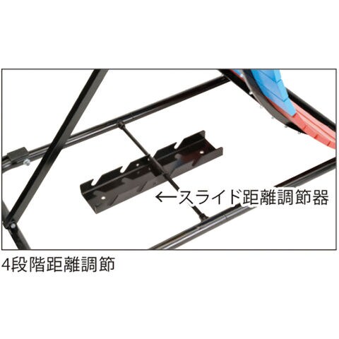 仕様:スライド距離調節器(フタ、クイ2本)付/土台フレーム直径3.4cm/フレーム部焼付塗装/角度4段階調節