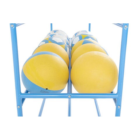 上段にのみ0~1号球(直径15~16cm)を8個収納、3段両面部に直径22cm球で36個収納可、競技用バスケットボールはご使用いただけません.