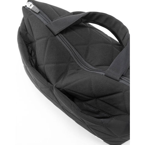 電子機器やその周辺アクセサリーの収納に便利な自立型のトートバッグです.クッション性を持たせたオープンジッパーのメインコンパートメントは、両サイドのスナップボタンを外せば、13インチまでのノート型PCやA4サイズの書類の収納が可能.社内や出張先、学校内での使用におすすめです.