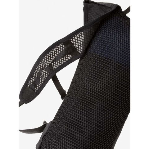 トレイルランニング用に開発するテクニカルパックの技術を用い、シティーランで使いやすい形に改良を加えたロードランニング用パックです.素材は70デニールのリサイクルリップストップナイロンを採用し、背面とショルダーハーネスには通気性に優れる軽量エアメッシュを配置.横ユレやブレが少ない背中上部に荷物が収納できる逆三角型.シンプルで使いやすく、軽さを追求した素材選びとデザインです.