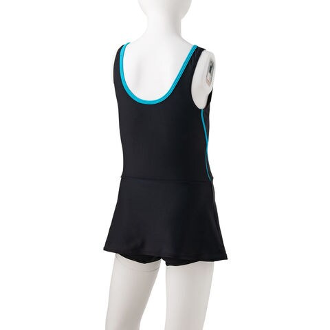 学校や市民プールなどにおすすめの女の子のスカートタイプの水着です.縦横に伸びる高いストレッチ性のある素材が成長期の変わりやすい体にフィット.しっかりとした厚みある素材は、ボディラインをカバーし、耐久性もあります.胸元裏地にはパットを入れるための袋付き.スカートの下には股下4cm(140cmサイズの場合)のインナーがついています.UPF50+のUVカット機能、紫外線遮蔽率99のある素材を採用しているため、屋外プールでも日焼け対策をしながら、ご利用いただけます.学校プールでも使いやすいベーシックなデザインです.