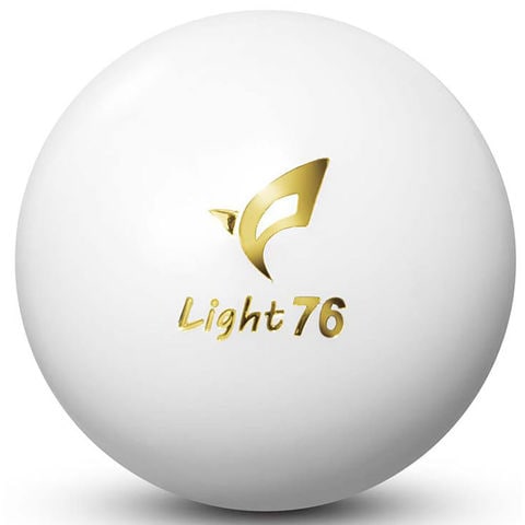 芝に強い約76gの軽量ボール.従来のライトボールから素材を見直し反発性能が約2.8向上.従来の中空ボールより慣性モーメントが約18小さく、転がり過ぎずにトマリやすい設計で距離が合わせやすい.箔押しでのターゲットラインデザインでボールが転がる方向を定めやすく、クラブをまっすぐ構えやすい.