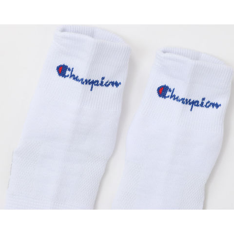 つま先とかかとに従来品と比べて約2倍(当社比)の摩耗強度を持ったタフなショートレングス丈のソックスです.抗菌防臭機能に加え、アーチサポート機能によってサポート力も向上.足甲部分にメッシュ素材を使用して通気性も高めています.フロントにChampion(チャンピオン)ロゴをジャカードで入れています.