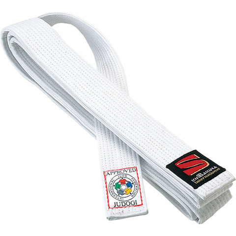 フェルト芯入、綿100で帯幅4.5cmに10本縫仕上げの、IJF・全柔連規格に基づいた認定白帯です.