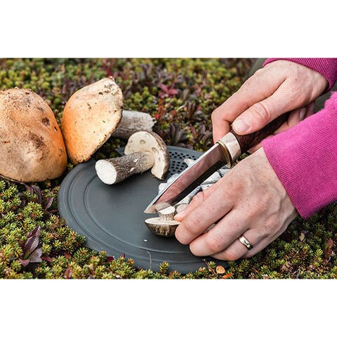 湯切りやまな板、ストームクッカーSの雪上での土台として使用することができるプレートです.ストームクッカーSの直径18cmのフライパン、またはツンドラ3の20cmフライパンの内側にぴったり納まります.ツンドラ3にセットされているような1.5Lのソースパン(ナベ)の蓋としても合うサイズです.