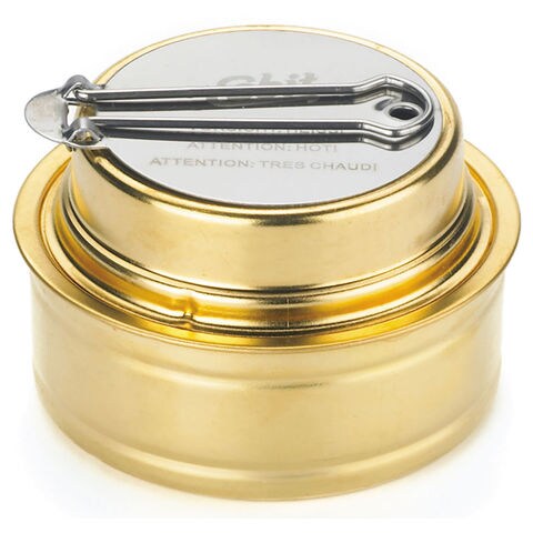 985mlクックセットに付属しているアルコールバーナーです.トップキャップはパッキング付き、フレームレギュレーターはハンドル付きで操作しやすくなっています.エスビットステンレスストーブでの使用が可能です.EsbitはNATO軍の標準装備ブランドです.